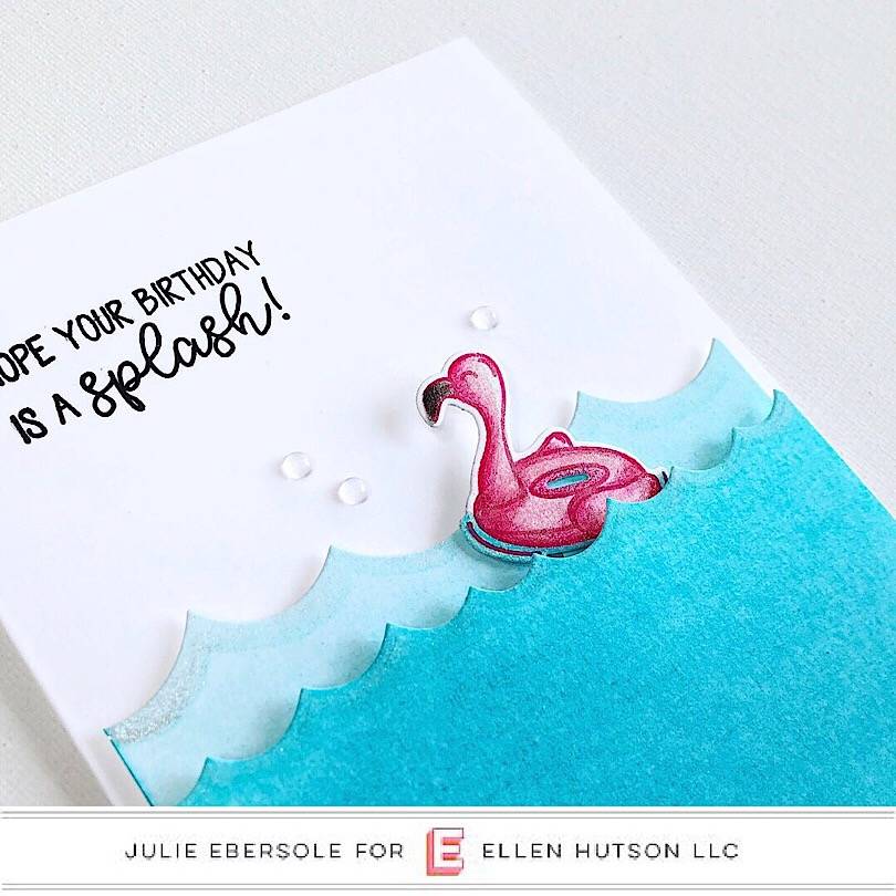 Today I’m sharing a very fun and easy interactive project called a Tilt & Pivot Card, featuring the adorable Avery Elle Splash Set! A penny is used to create a “pendulum” so that when you tilt the card from side to side, the focal image rocks back and forth.